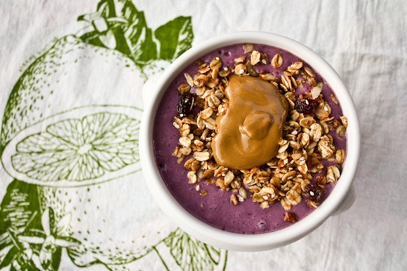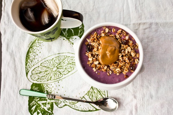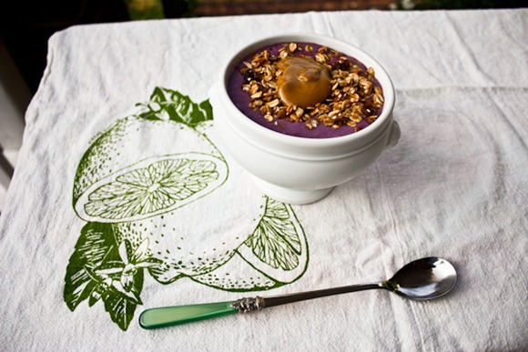 A Raspberry Blackberry Purple Bomb with Rise + Roll bakery’s Maple Granola and a blob of the world’s finest nut butter