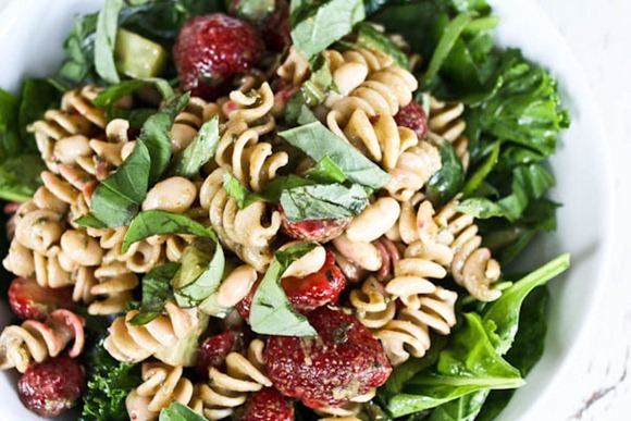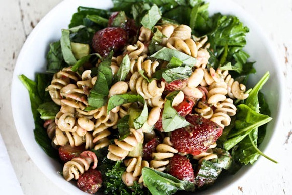 I love strawberries mixed with greens. I also love the idea of mixing pasta with salad greens – such a great summer meal.