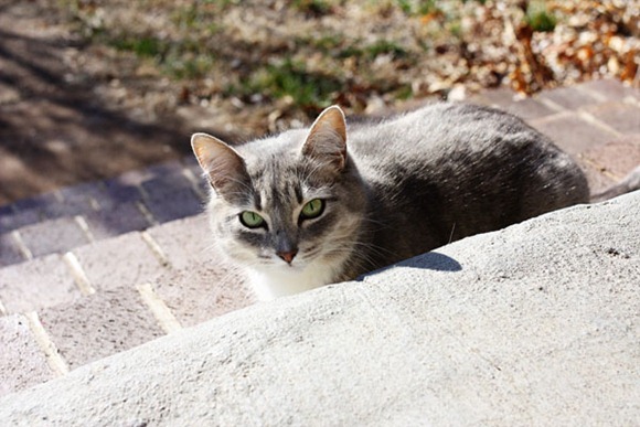Our neighbor kitty stopped by to say hello this morning – can’t believe I got him to sit still for a photo! He lives down the street and is pretty skittish. ALL of the neighborhood cats have started hanging out here!