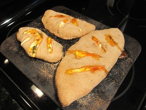 We had “oops-idental” calzones last night (our friend Matt acidentally flipped the pizza onto itself when he transferred it to the pizza stone) – but your filling definitely looks tastier!