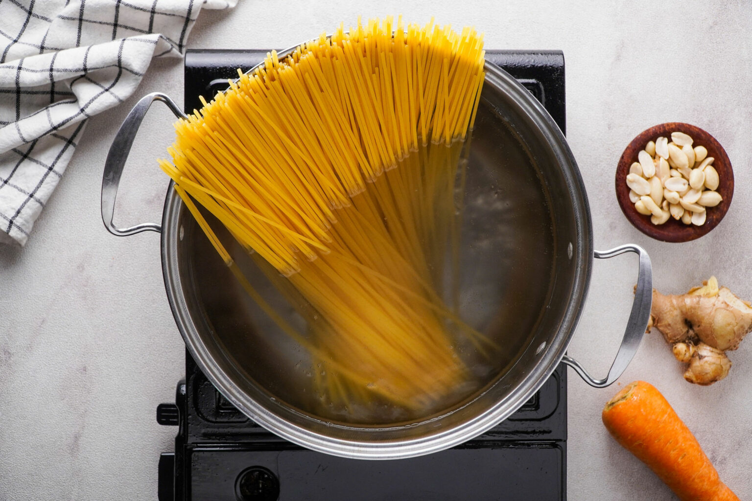 Begin by cooking some pasta. I used whole wheat spaghetti, but soba noodles would be great too!