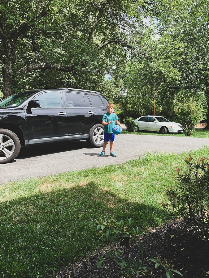 We played basketball (aka I rocked Birch on the porch and we counted Mazen’s dribbles) and took B on a walk.
