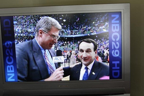 I don’t dare interrupt DH during any Duke game. The joke in our house is Coack K’s dye job; not a grey hair on the man!
