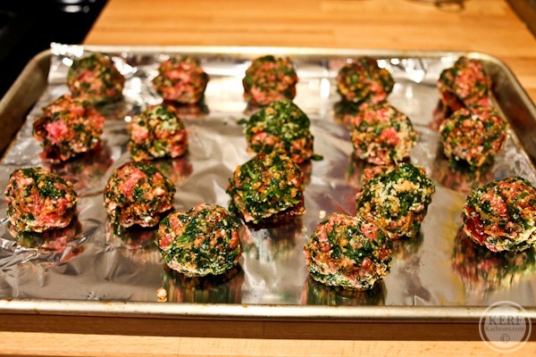 The recipe involves throwing everything in a bowl, forming the mixture into meatballs and baking for 25 minutes. Nothin’ to it.
