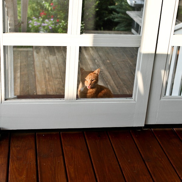Pumpkin looks like he wants to come inside.