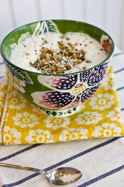 I topped it with Cville Cluster granola (where all the heft enters this breakfast!) and the other half of the banana – sliced and sunken deep down in the bowl. I LOVE dipping my spoon in the liquid and finding a nugget of granola or a slice of banana like sunken treasure on the bottom!