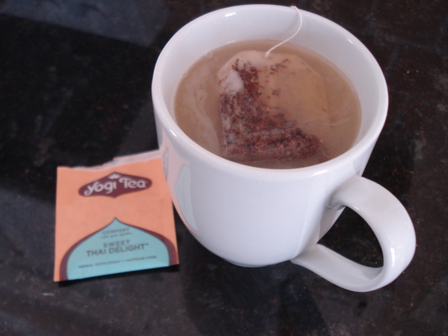 I also had hot tea earlier in the afternoon. I am doing my best to give up Splenda. I haven’t had it in 3 days! I am just trying to enjoy the tea/coffee/pumpkin for what it is and focusing on the flavors. It seems to be going well, but I did put Stevia in my coffee. Not sure what to do tomorrow because I used our last packet! (See this post for a discussion on Splenda and Stevia). I can handle plain tea, but not plain coffee. I love a good cup of coffee though! I’d hate to give it up. Le sigh.