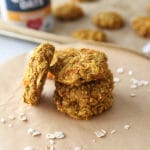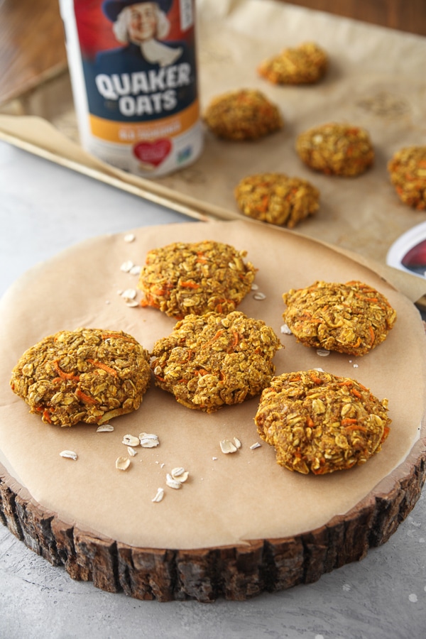 Made with Quaker Old Fashioned Oats, homemade oat flour, flax, carrots, apple, and pumpkin, these cookies are super good! The oats and oat flour make them 100% whole grain, and they have 3 grams of fiber per cookie. Plus, the only added sugar comes from a touch of honey, so they have less than 5 grams of sugar per cookie. You can also make them with Quaker’s Gluten Free Oats for a gluten-free recipe.