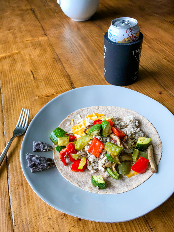 The veggies went into a wrap for lunch the next day with tuna salad and melted cheese. (Note the Bark Thins on the side for dessert!) And I had them for lunch another day and a picnic dinner on Thursday.
