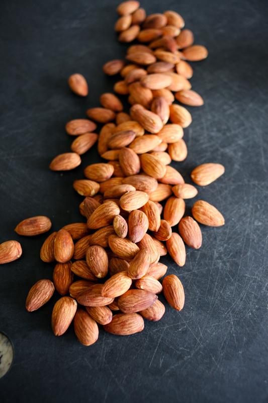 Begin by roasting your almonds in the toaster or conventional oven. Do not take your eye off of them! When they are lightly brown and fragrant, remove from the heat and chop.