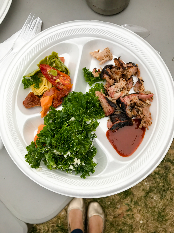 And then for dinner – smoked pork, kale salad (which I brought), and pasta salad. And beer(s)!