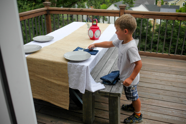 The camp went from 9-3 each day, and the kids prepared a meal for their families. Matt and I have been trading off, so I haven’t gotten to try them all, but I took the time to photograph one meal from the week. Mazen LOVES to be in charge, and I got the linens out so he could set the table and make his dinner extra special.