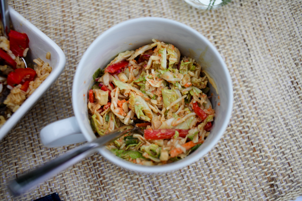 All five meals are plant-based and vegetarian, and on the menu this night was a lovely vegetable stir-fry with brown rice and a crunchy Asian cabbage slaw to go with it. Both were delicious!! The teachers share the recipes with us parents at the end of the week so we can make them again.