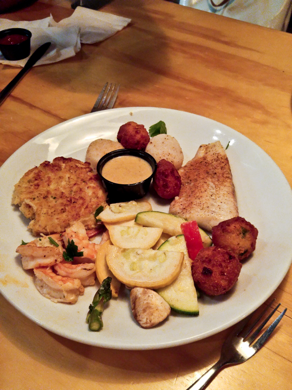 We had dinner at Groovy’s and shared fried oysters, clams and a broiled seafood platter.