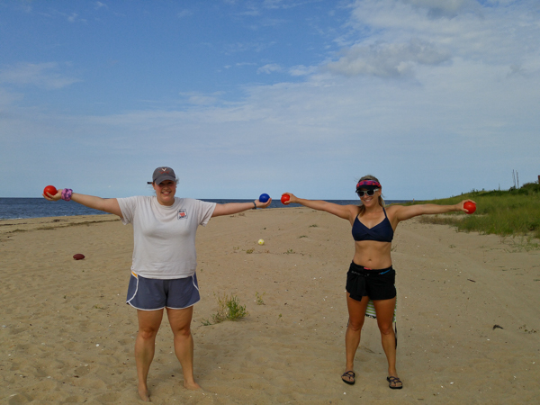 Luckily the beach was pretty deserted when we did our challenge! When we did the bocce ball one though people did give us looks – I think they thought we were just working out!