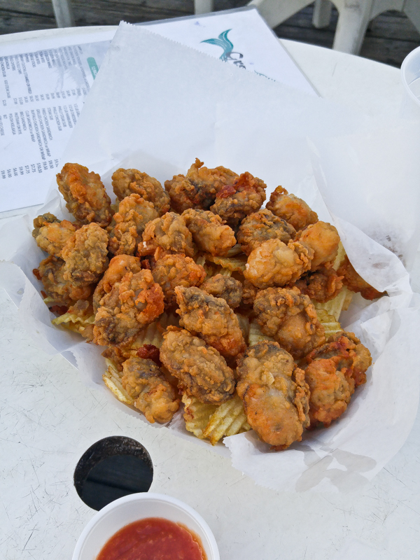 We went to Greenie’s for dinner where we had an OK meal. Fried fish, fries and slaw for me, plus more fried oysters!