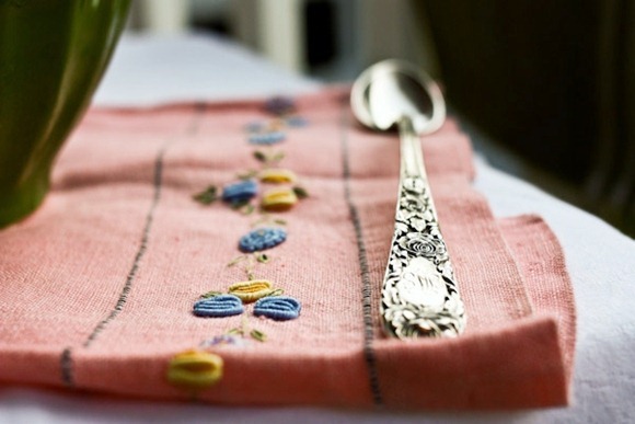 (That first photo of the embroidered flowers on the napkin/towel? Looks exactly like a line-up of oats and dried fruit!)