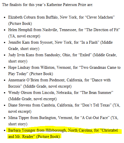 Congrats to my MOM for being a finalist for the Katherine Paterson Prize! The book was part of her MFA of last year.