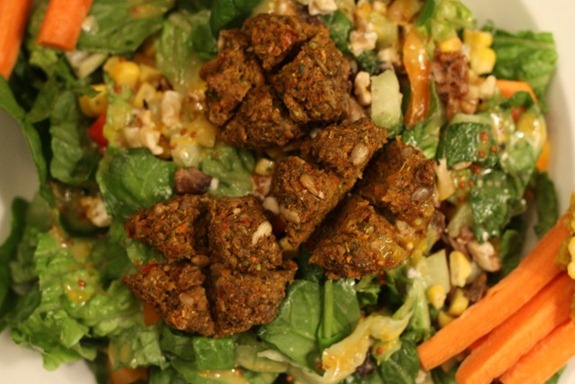I took my leftovers from Big Daddy’s and combined them with romaine and chopped bell peppers. Added 3 In A Jiffy burger balls and some of my leftover orange dressing.