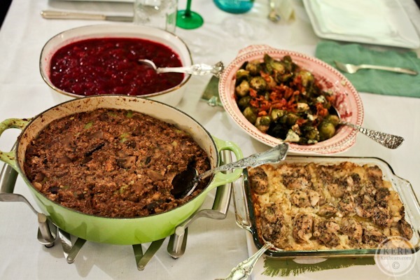Everything looks so delicious! Do I see bacon with the Brussels sprouts? Karen is lovely as usual.