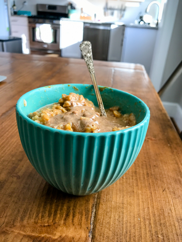 I had pumpkin oatmeal with melted almond butter for Saturday breakfast.