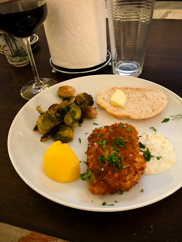 On Saturday I went to a friend’s house for dinner and we had panko turbot, brussels sprouts, focaccia, and a homemade tartar sauce. Homemade pumpkin cheesecake for dessert!