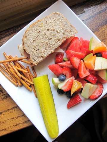 Sandwich bar–sounds excellent! I love pretzels–they aren’t very good in the UK though, but I usually can’t find them. That fruit salad looks so tasty.