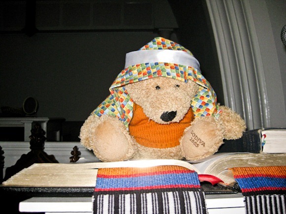 You should write a book about the bears! You could add in recipes and have a bear cook book! The best part about this post was when Churton donned a shepherd’s outfit and read Psalm 23…sooo funny! I had to hide my laughter at work.