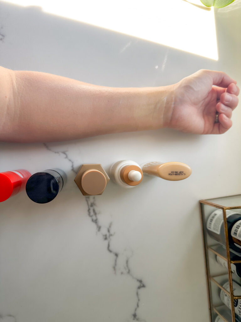 It’s amazing to me that they all appear to be quite different shades and then they all rub in seamlessly and match my skin tone!
