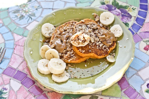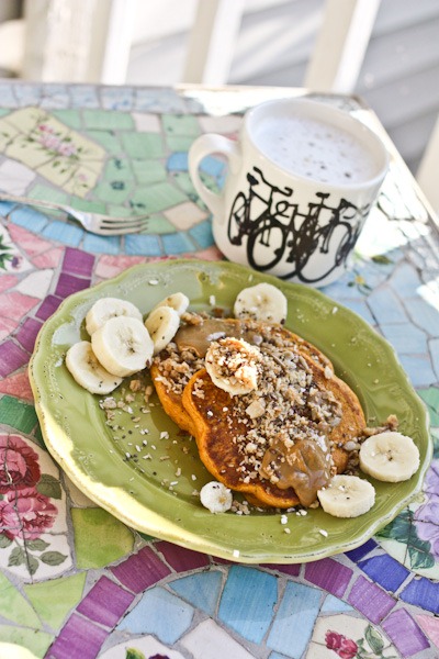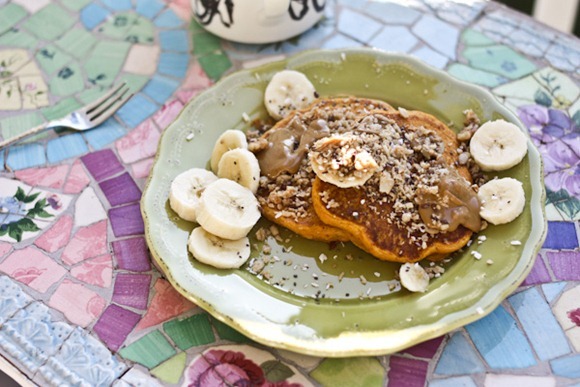 I love your pumpkin pancakes. I have a pancake mix (just add liquid) that I have to use up but first, a can of pumpkin!