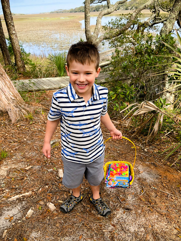 I had a banana with almond butter for a small breakfast, and we waited for the arrival of the Easter Turtle! Since the Easter Bunny can’t swim across the island, the Easter Turtle helps him out with island deliveries. Mazen got a pirate-themed basket!
