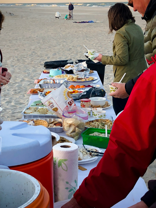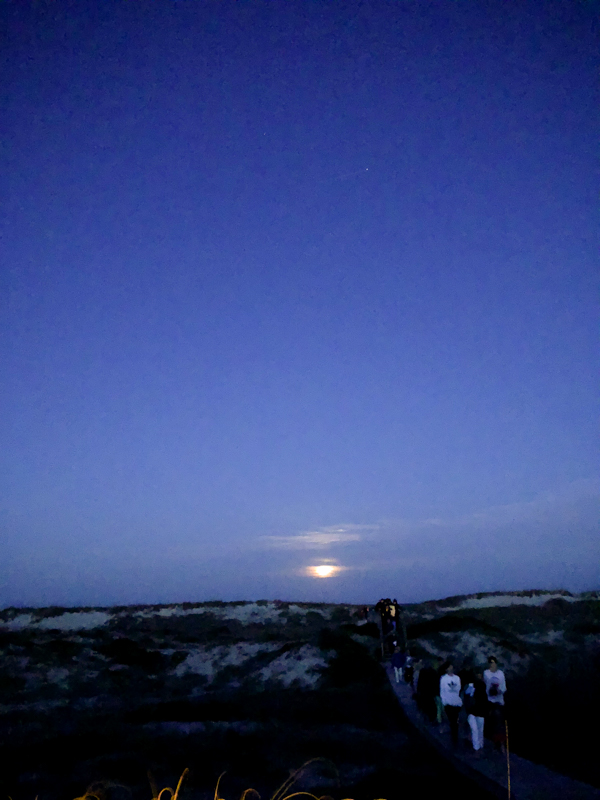 Saturday night, the island held its monthly Howl At The Moon event on East Beach. They provide a main dish and everyone brings a potluck dish to share. A bagpiper comes out to serenade the group while we watch the moonrise – and howled of course!