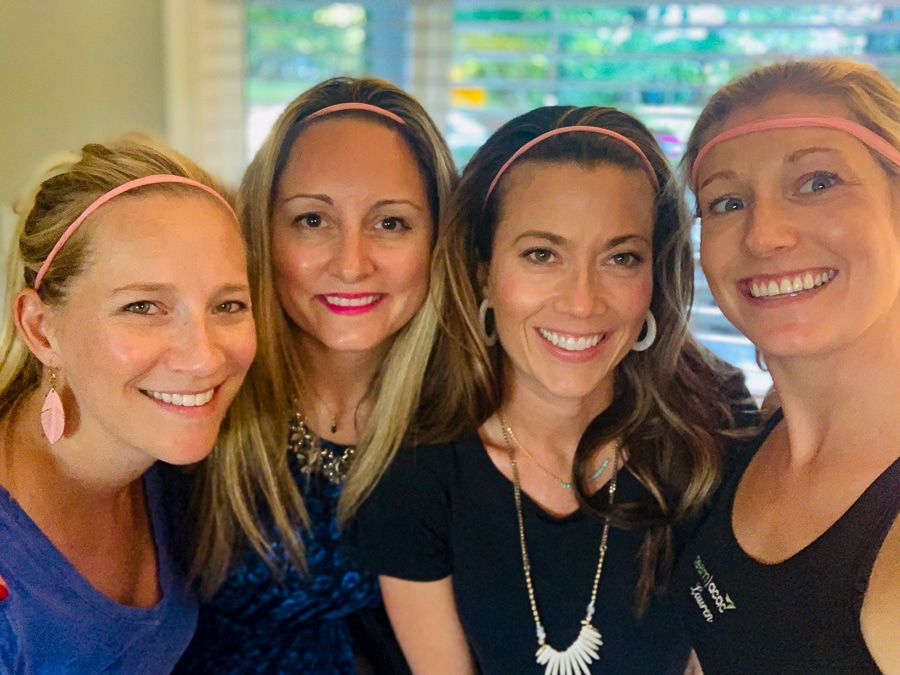 We used soccer prewrap! It’s so easy. You just tear some off and tie it into a headband!