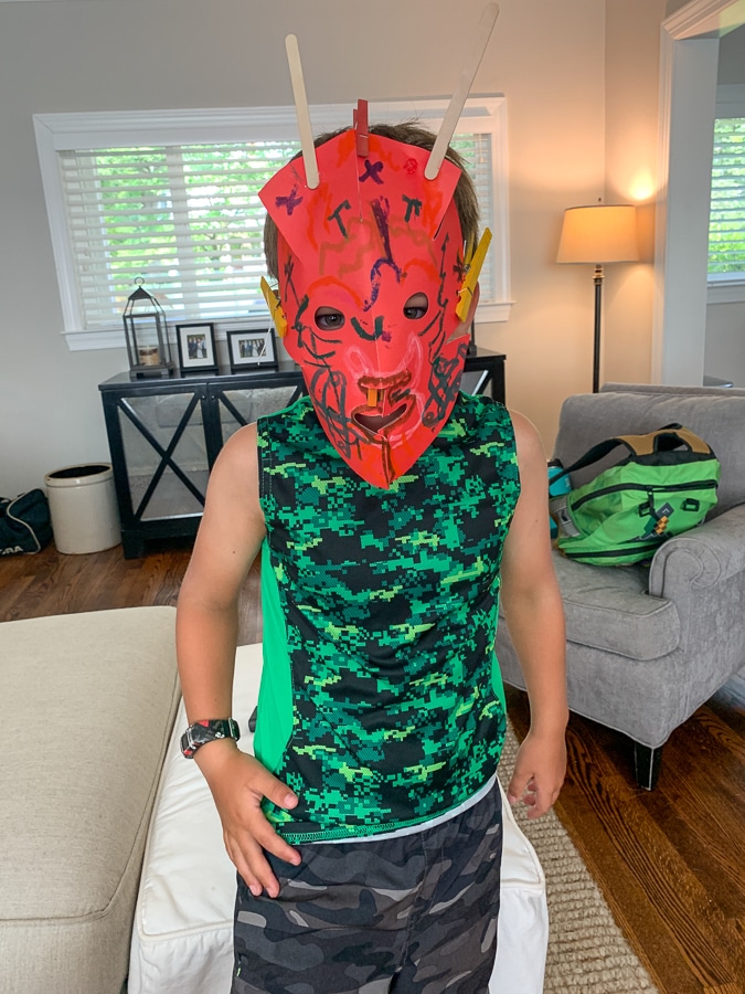Mazey was in a cool art camp all week – he made some really creative things – like this scary mask!