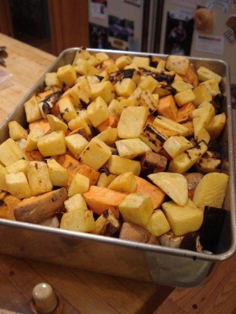 We spent the afternoon cooking turkey, roasted vegetables, mac and cheese and soup. I nibbled off the veggies and tried to get some water in. Then my uncle-in-law showed up with homemade bread – I forgot what it’s called, but it’s got Grand Marnier-soaked dried fruit in it and was SOOOOO good. He also brought a coffee cake-like bread, which I also sampled. I felt gross after eating these in the middle of the afternoon, after a bagel. But these were both “worth it” as homemade breads from the family bakery at Christmastime.