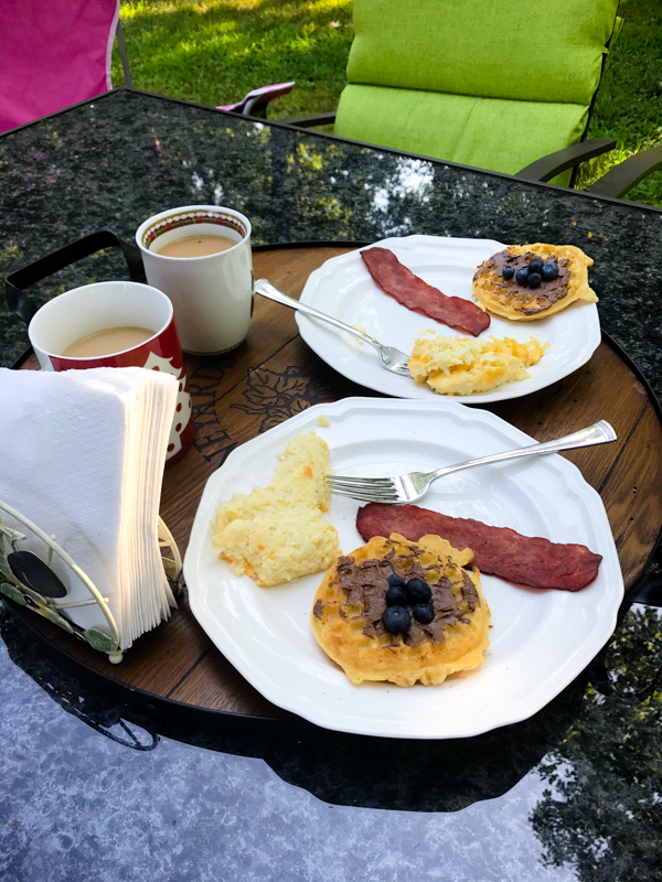 Sarah made us breakfast — quiche from Mazen’s Supper Camp, bacon, and waffles with Nutella (a kid treat that the grown-ups jumped onto!)