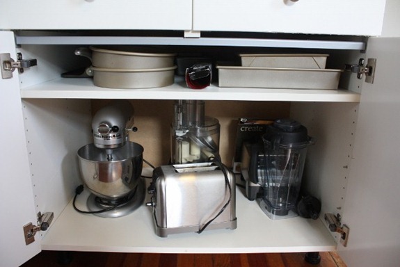 Looks like you don’t have a lot of counter space to work with there. At least you’re able to stow away your appliances in cupboards.