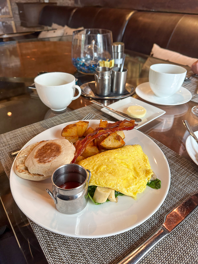 Everyone kept wishing us a happy anniversary and we just rolled with it. I figured my sister had checked that box when she booked the room. When I sent her a picture of our dessert, she reminded me that it WAS our anniversary – the anni of our engagement! We had both forgotten – haha!