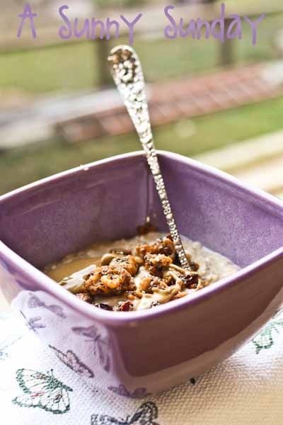 I love the purple writing and the beautiful purple bowl! Purple is my favorite color 🙂 The butterflies are pretty too! Beautiful breakfast!