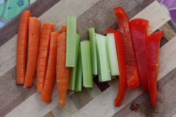 I also like to pack plain sticks of veggies, love to munch on those! Bell peppers and zucchini are my favorites!