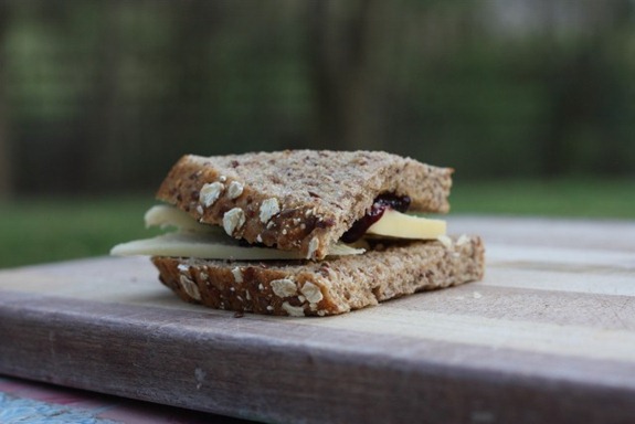 Half a sandwich of Organic Valley Sharp Cheddar and Crofter’s on Flax Oat Bran. Three of the world’s greatest foods!!! I can’t get enough of all of them.