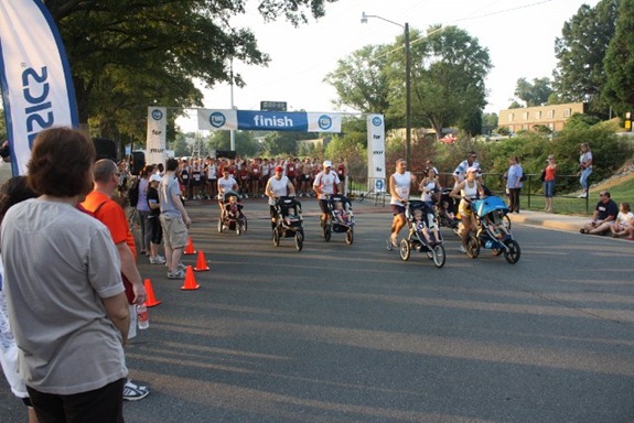 I applaud the inclusion of strollers. But did they really start ahead of the pack? That doesn’t make any sense to me, unless they had a MAJOR head start. My usual time for 5Ks is 23/24 minutes, but if I did one with my 2-year-old in the stroller, it would probably be 27/28 minutes. The top runners usually finish in around 15 minutes, so I don’t get how they wouldn’t trample the joggers.