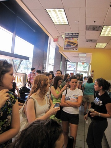After showers, we gathered in the lobby once more for a walk to Finagle A Bagel for brunch. Some of the girls had leftover bake sale items that they distributed. I snagged an Almond Butter Ball and ate it on the spot! HUNGRY!