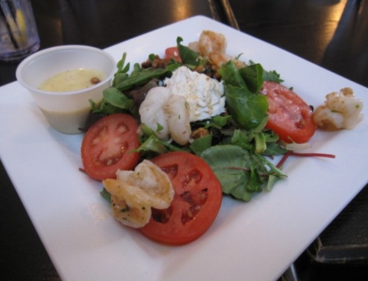 I ordered a mixed greens salad with goat cheese, walnuts, tomatoes and shrimp