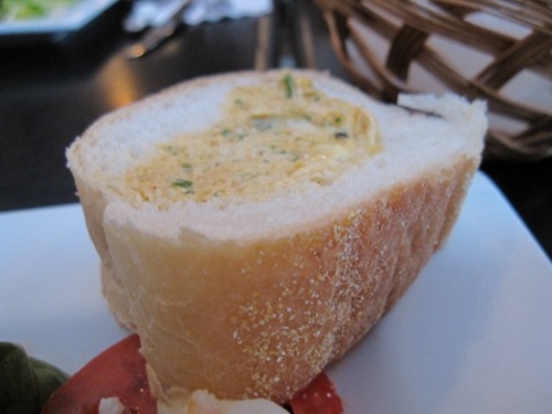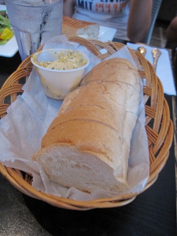 And I had a small piece of bread and some some spicy garlic herb butter spread (and a bite of Meghan’s chicken!)