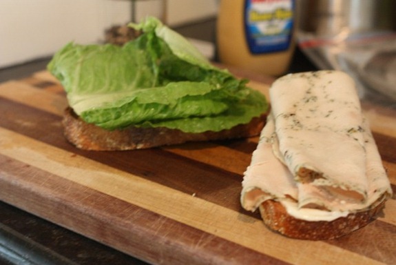 When it’s time to put the main ingredients on, the secret is to layer them. Fold your pieces of lettuce up, and roll your meats. Besides getting some extra chew out of it, you’ll just plain make your sandwich look bigger, and when your food LOOKS better, it tastes better.