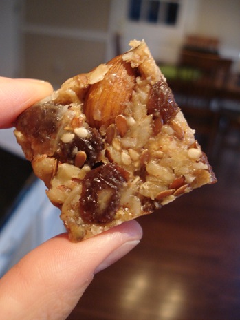 The ProBar, which is all organic, raw, vegan whole foods – me likes! – tasted delicious. The maple flavor was the perfect amount to now overpower the bar and the nuts were nice and chunky. And I loved the whole flax seeds in it to crunch between my teeth. My gripe? This TINY 1″ portion was 100 calories (that’s 1/4 of the 400 calorie bar)! It’s just too calorie dense for me to use regularly, but these would be perfect for an athlete or someone aiming to gain weight without feeling stuffed: