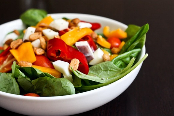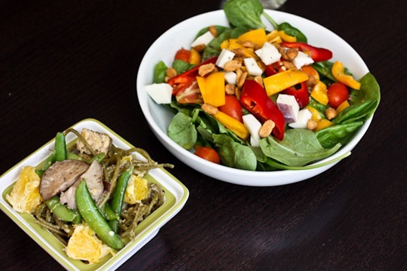 Plus a spinach salad with peppers, tomatoes, honey peanuts and Drunken Goat!
