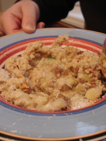So I set to work on the oatmeal lesson, showing him the whipped banana technique. Hopefully he’ll try it on his own soon!