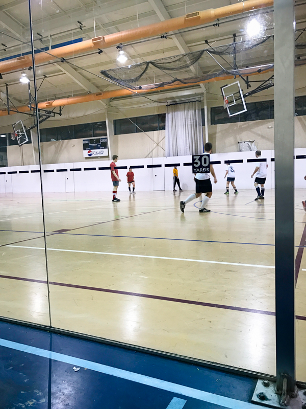 Indoor soccer has started! It’s so much fun because it’s so intense with the small space. The ball can bounce off all of the walls, and a goal is scored by smacking the ball on a mat on the wall. It’s higher scoring than regular field soccer, and I scored two goals in each of our first two games, so it makes you feel cool even though it’s easier to score. Score!